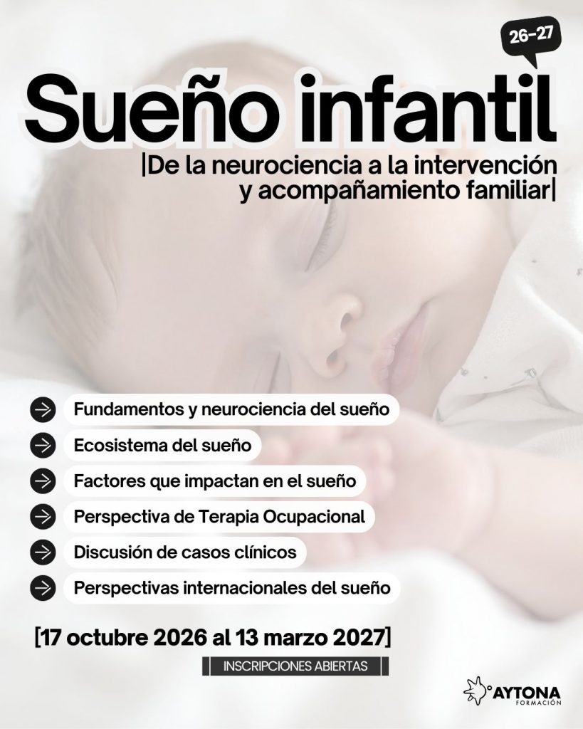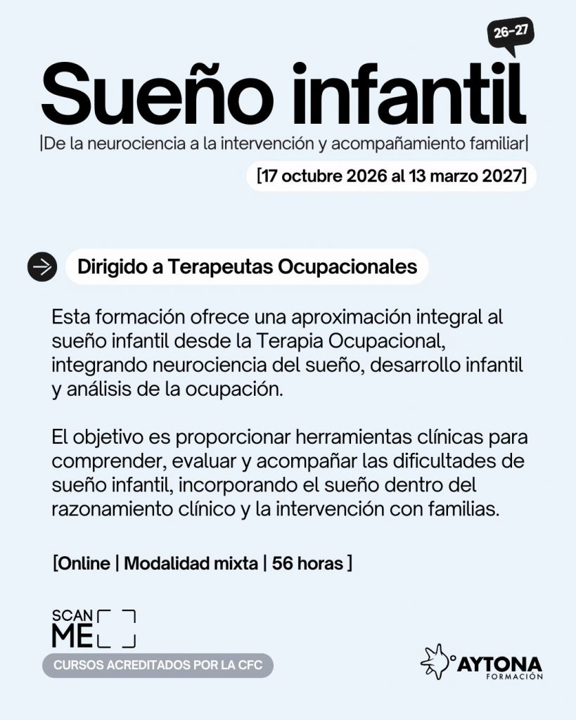 Esta formación ofrece una aproximación integral al sueño infantil desde la Terapia Ocupacional, integrando neurociencia del sueño, desarrollo infantil y análisis de la ocupación.